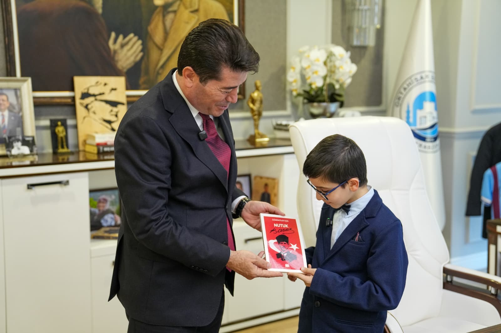 Ortahisar Belediye Başkanı Ahmet Kaya, 23 Nisan Ulusal Egemenlik ve Çocuk Bayramı dolayısıyla TED Trabzon Koleji Ortaokulu 5. sınıf öğrencisi Emin Arman Öztürk ve ailesini makamında ağırladı. Kendisine çiçek veren Emin Arman Öztürk ve ailesini ‘hoş geldiniz’ diyerek karşılayan Başkan Kaya, daha sonra “Buyrun Başkanım” diyerek koltuğunu Emin Arman’a devretti.