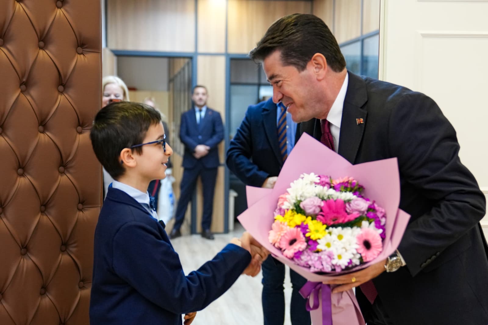“Büyük Atatürk’ün size ve bütün dünya çocuklarına en güzel armağanı, 23 Nisan Ulusal Egemenlik ve Çocuk Bayramınız kutlu olsun” diyen Başkan Kaya, Emin Arman'a, “Sayın Başkanım, Trabzon’a, çocuklara, bu şehirde yaşayan güzel yürekli insanlarımıza ilişkin neler yapmamızı istersiniz?” diye sordu.