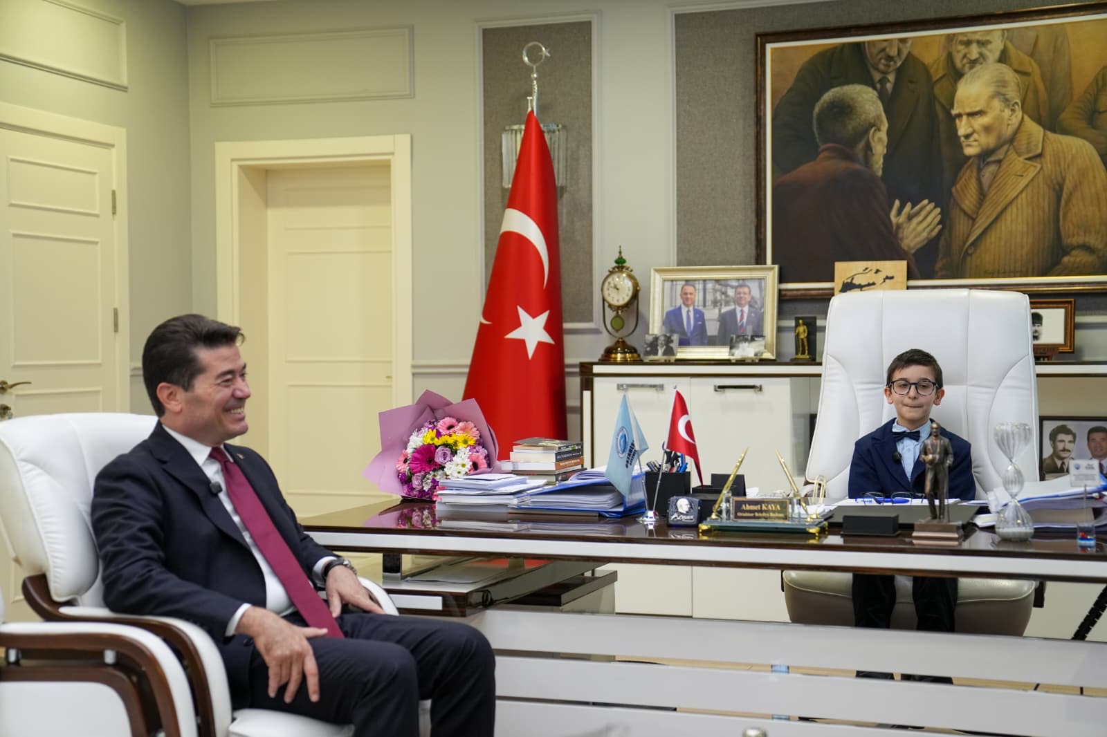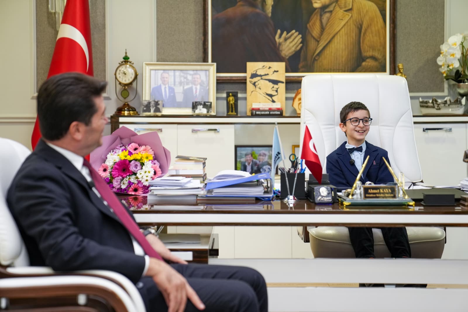 Ortahisar Belediye Başkanı Ahmet Kaya, 23 Nisan Ulusal Egemenlik ve Çocuk Bayramı dolayısıyla koltuğunu TED Trabzon Koleji Ortaokulu 5. sınıf öğrencisi Emin Arman Öztürk’e devretti. Trabzon’da yapmak istediği çalışmalar ve çocuklar için güzel dileklerinden dolayı Emin Arman’a teşekkür eden Başkan Kaya, bütün çocukların bayramını kutladı.