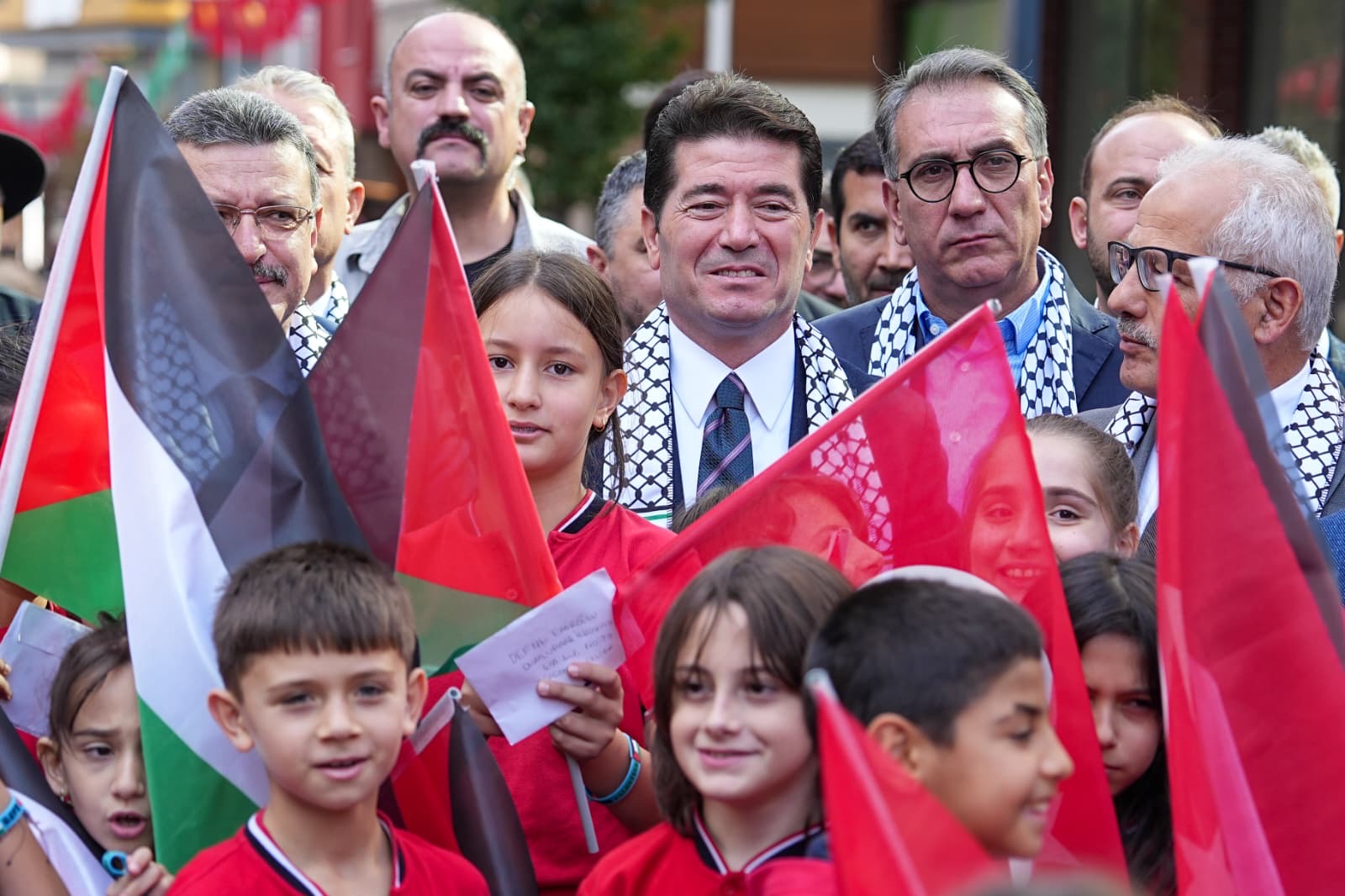 Filistin’de, dünyanın gözü önünde çok büyük bir insanlık dramı yaşandığını, çocukların açlıktan öldüğünü belirten Başkan Kaya, “Bu yüzyılda gözümüzün önünde çok büyük insanlık dramı yaşandı. Her akşam üzülerek, ağlayarak, kahrolarak bu insanlık dramını medyadan izledik. Bu yüzyılda çocuklar açlıktan öldü! Bunlara tanık olmanın vicdan azabı içerisindeyiz. İnsan merhametiyle, vicdanıyla insandır. İnsan cebine koyduğuyla değil, paylaştığıyla insandır. Bu anlamda her birimiz imkanlarımızı seferber ederek orada açlık sefalet çeken insanlarımıza destek olmak zorundayız” dedi.