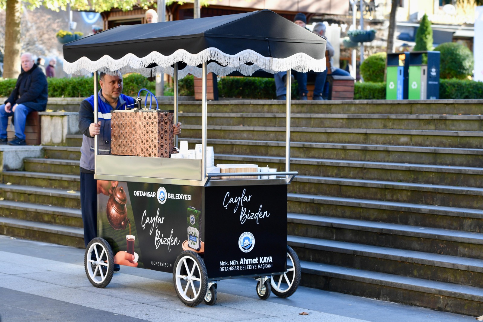 ORTAHİSAR BELEDİYESİ’NİN SEYYAR ÇAY ARACI, KENTİN EN İŞLEK NOKTALARINDA ÜCRETSİZ HİZMET VERMEYE BAŞLADI