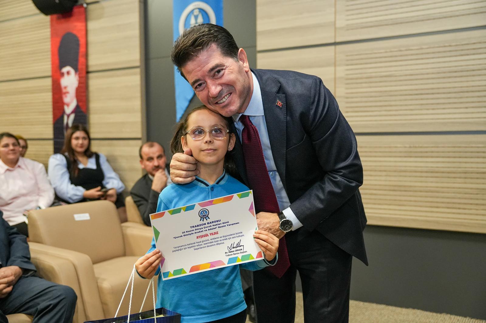 Trabzon Barosu Çocuk Hakları Komisyonu ile Kültür ve Sanat Komisyonu tarafından Ortahisar Belediyesi’nin desteğiyle düzenlenen “Çocuğun Gözüyle Avukat ve Adalet” temalı resim sergisi ve ödül töreni, 20 Kasım Dünya Çocuk Hakları Günü kapsamında geniş bir katılımla gerçekleştirildi. Trabzon Barosu’nda düzenlenen törene Ortahisar Belediye Başkanı Ahmet Kaya, Trabzon Valisi Aziz Yıldırım, Büyükşehir Belediye Başkanvekili Ahmet Yüksel Gülay, Trabzon İl Milli Eğitim Müdürü Hasan Uygun, Trabzon Barosu Başkanı Av. Hakan Orhan, ilçe protokolü, öğretmenler, veliler ve çok sayıda öğrenci yer aldı.