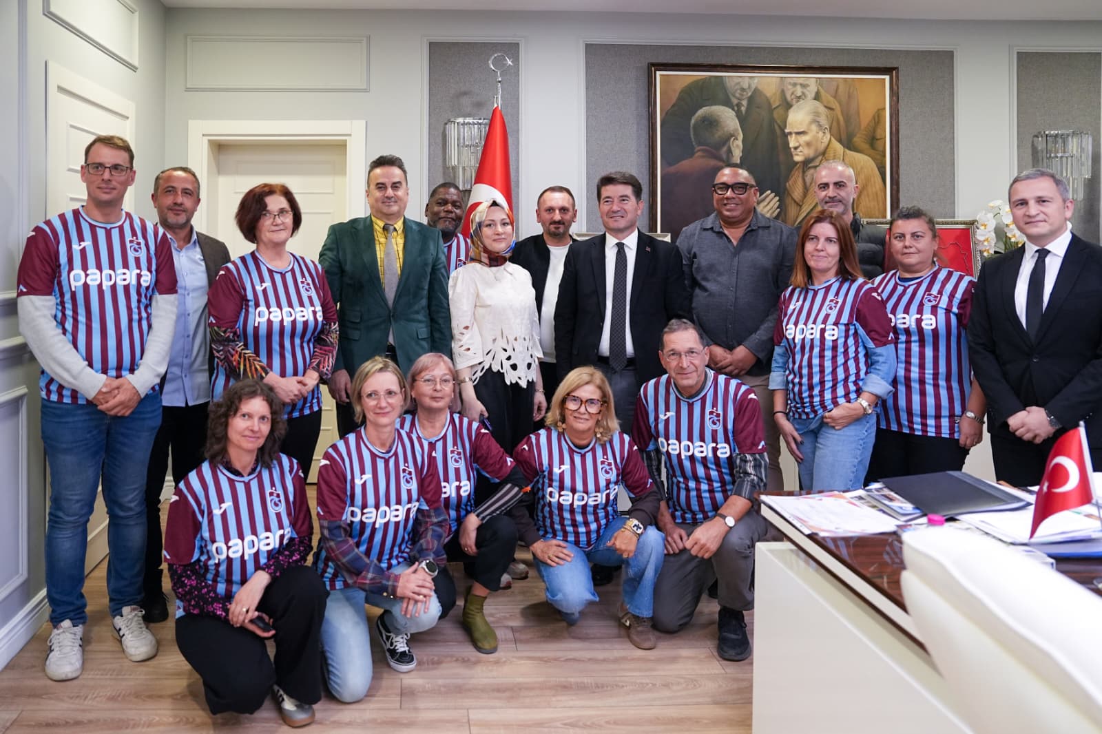 Ziyaretin sonunda misafir öğretim görevlileri, proje sürecinde sağladığı destek ve misafirperverliği için Başkan Kaya’ya teşekkür etti. Başkan Kaya, heyet üyelerine Trabzonspor forması hediye etti.