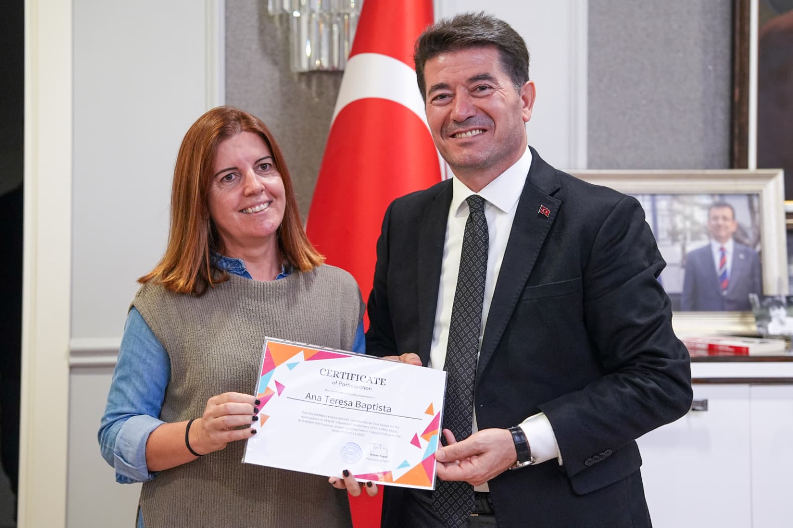 ERASMUS+ KA220-SCH (VR-AR) “Sınıflarda Dijital Dönüşüm Projesi” kapsamında Trabzon’a gelen öğretim görevlileri, Ortahisar Belediye Başkanı Ahmet Kaya’yı makamında ziyaret etti. Eğitimde dijital dönüşümün bir zorunluluk haline geldiğini belirten Başkan Kaya, Ortahisar Belediyesi olarak bu yönde yürütülen projelere destek vereceklerini söyledi.