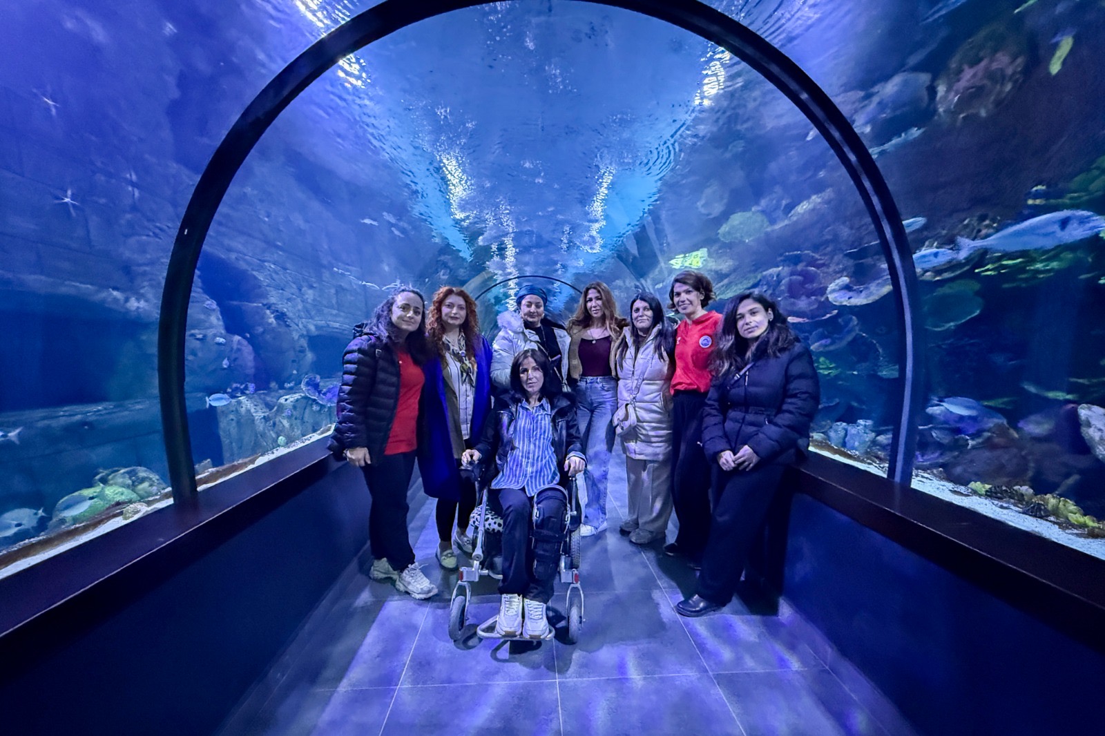 Gençlik ve Spor Hizmetleri Müdürlüğü ekipleri, şehrin değerlerinin birlikte keşfedilmesi ve kültürel ve sosyal alanlarda bir araya gelmek amacıyla günün ikinci programında kadınları, Trabzon Akvaryum’da ağırladı. Burada deniz canlılarını keşfederek keyifli bir gün geçiren kadınlar daha sonra Ekopark’ta yürüyüş yaptı.