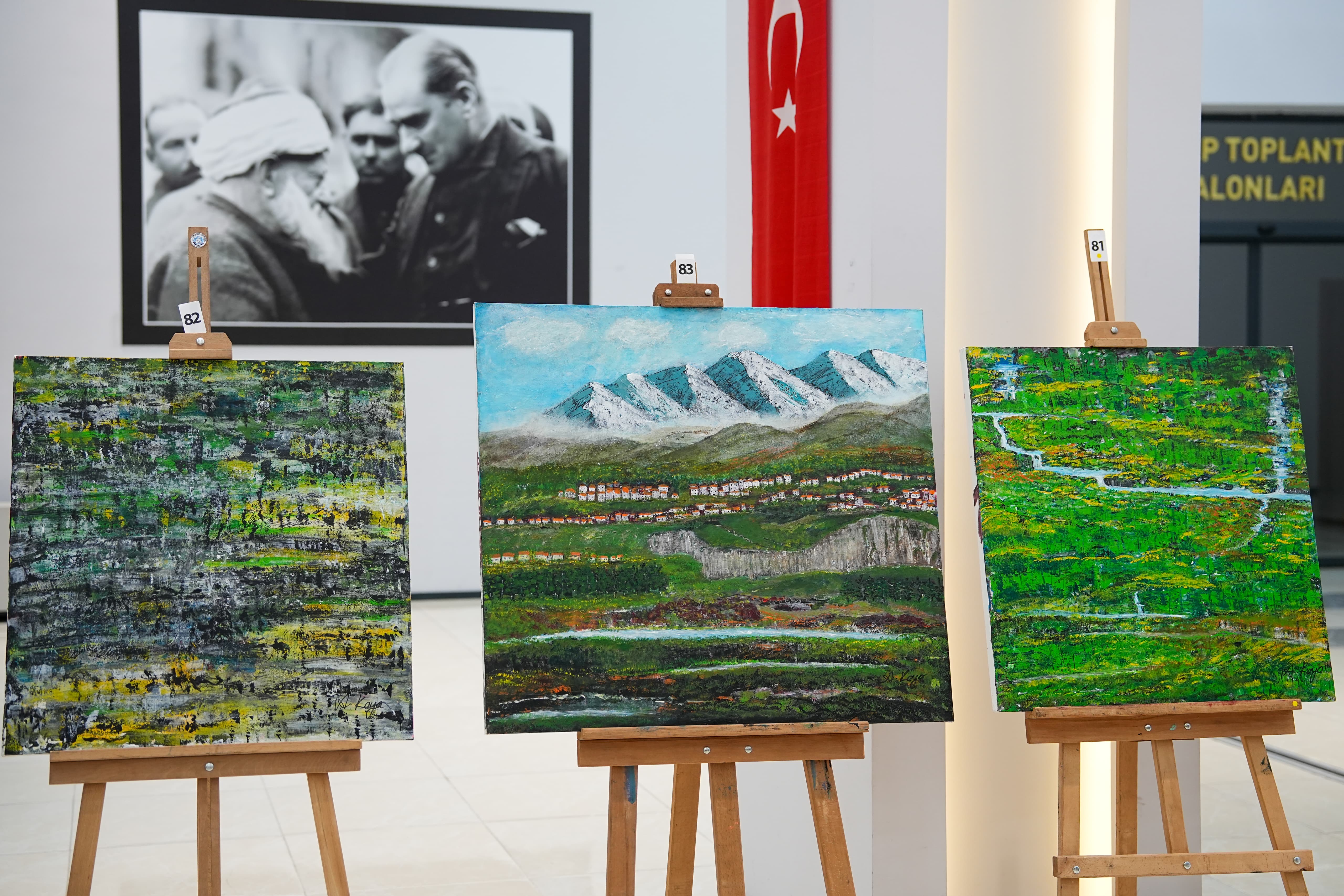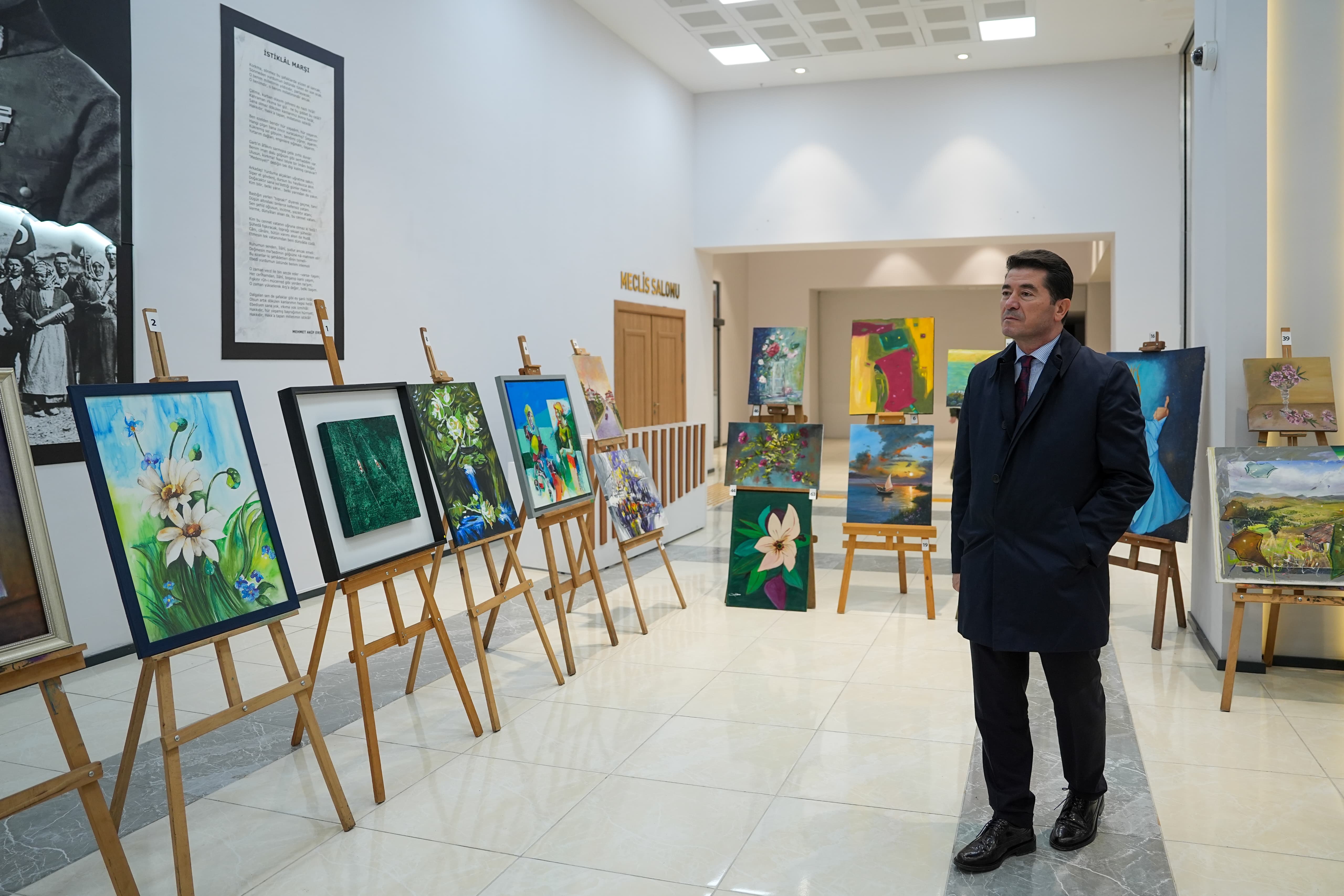 Burs verilen öğrenci sayısını artırma hedefinde olduklarını ifade eden Başkan Kaya, “Bize müracaat eden, ekonomik sıkıntıda olan bütün ihtiyaçlı yavrularımıza el uzatalım istiyoruz. Bu anlamda bizi destekleyen, yalnız bırakmayan bütün dostlarıma çok teşekkür ediyorum. Bugün de iş insanlarımızı, sanatçılarımızı, dostlarımızı sergimize davet ettik. Sergide benim de ‘karalama’ olarak nitelendirdiğim birkaç resmim var. Ortaokuldaki resim bilgimle, sırf bu işe katkı olsun diye yapmaya çalıştığım resimler… Ama çok değerli sanatçılarımızın, çok güzel resimleri de var. Onları da sizlerin beğenisine sunduk. Buradan elde edilen bütün gelir, öğrencilerimize, yavrularımıza burs olarak aktarılacak. Şu anda 46 üniversiteden 107 öğrencimize burs veriyoruz ama bu sayıyı artıracağız. Herkesten destek bekliyoruz. Katkı sağlayan herkese da teşekkür ediyoruz” diye konuştu.