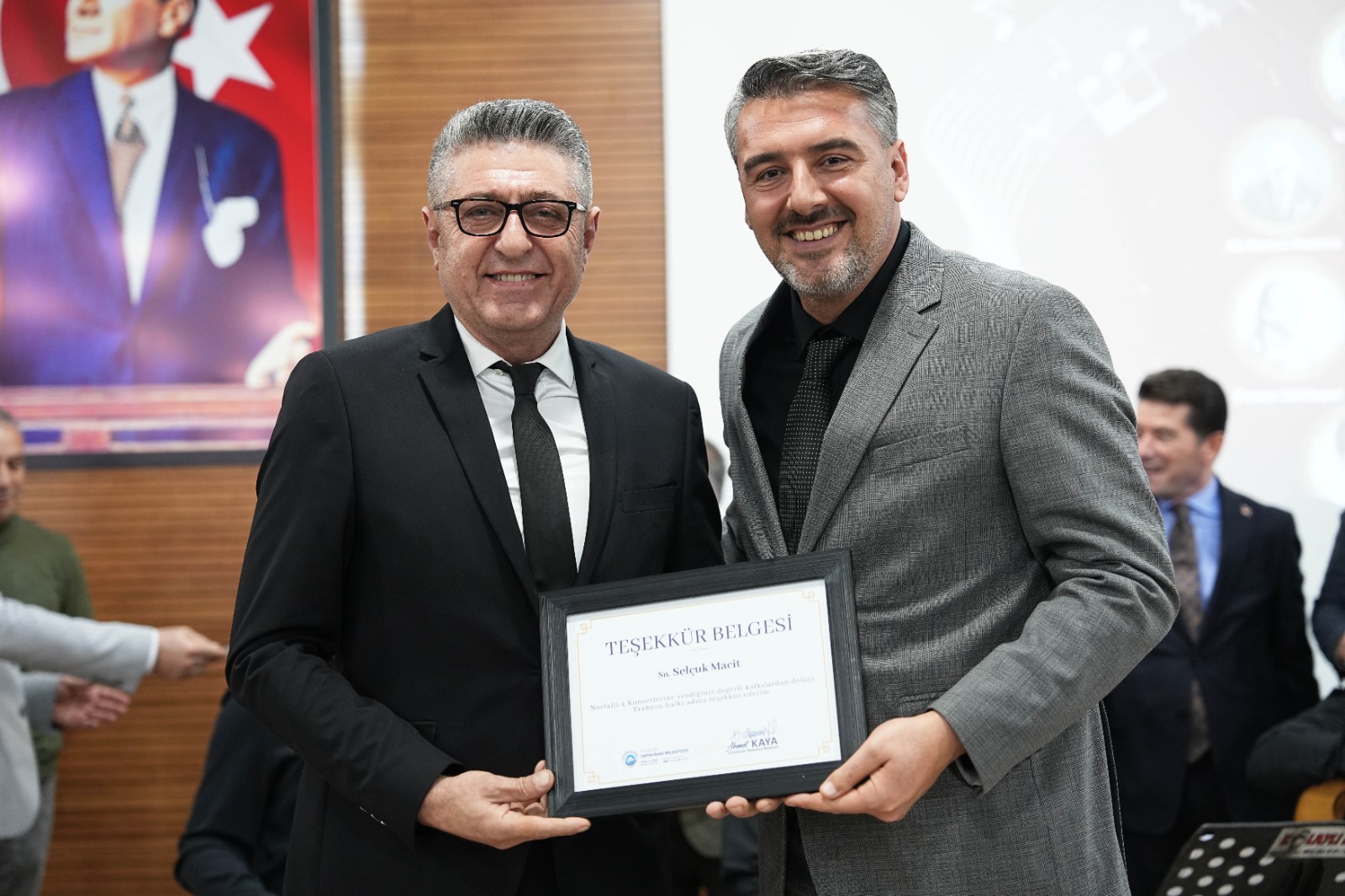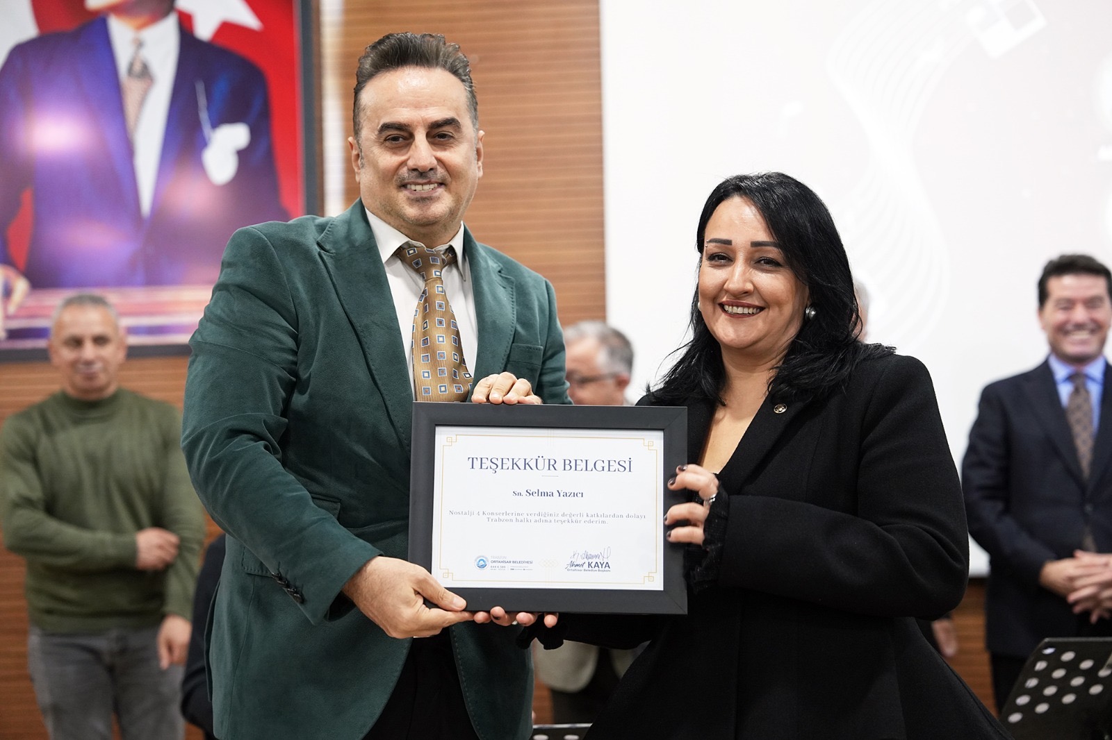 Konserde sahne alan sanatçılara, saz heyetine ve programa katılan davetlilere teşekkür eden Başkan Kaya, “Yorucu bir haftanın güzel bir akşamında sizlerle buluşmaktan çok mutlu olduk. Gerçekten bu koşuşturmanın içinde, bu zor dönemin içinde, bu tür etkinliklerle nefes alıyoruz, kendimize geliyoruz. O yüzden sizlere çok çok teşekkür ediyorum. Bu koşuşturmanın, yoğunluğun içinde fark etmiyoruz ama insan için nefes alma aralığı, bu tür programlar oluyor. O yüzden sanat ve sanatçılarımız bizler için çok değerli. Bu güzel akşam için, bizlere yaşattıklarınız için sizlere çok teşekkür ediyoruz. Yeni yılınızı da gönülden kutluyorum. Ailenizle ve tüm sevdiklerinizle sağlıklı, mutlu, huzurlu, barış dolu, adalet dolu bir 2026 diliyorum” diye konuştu.
