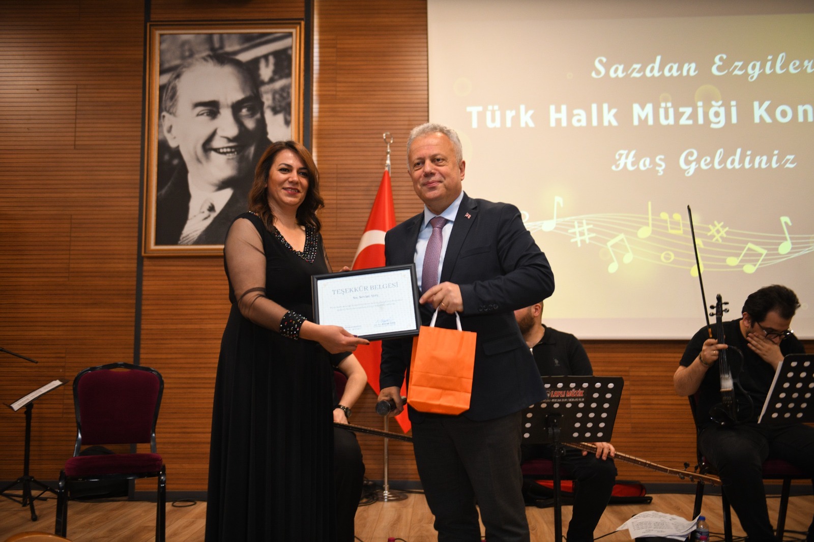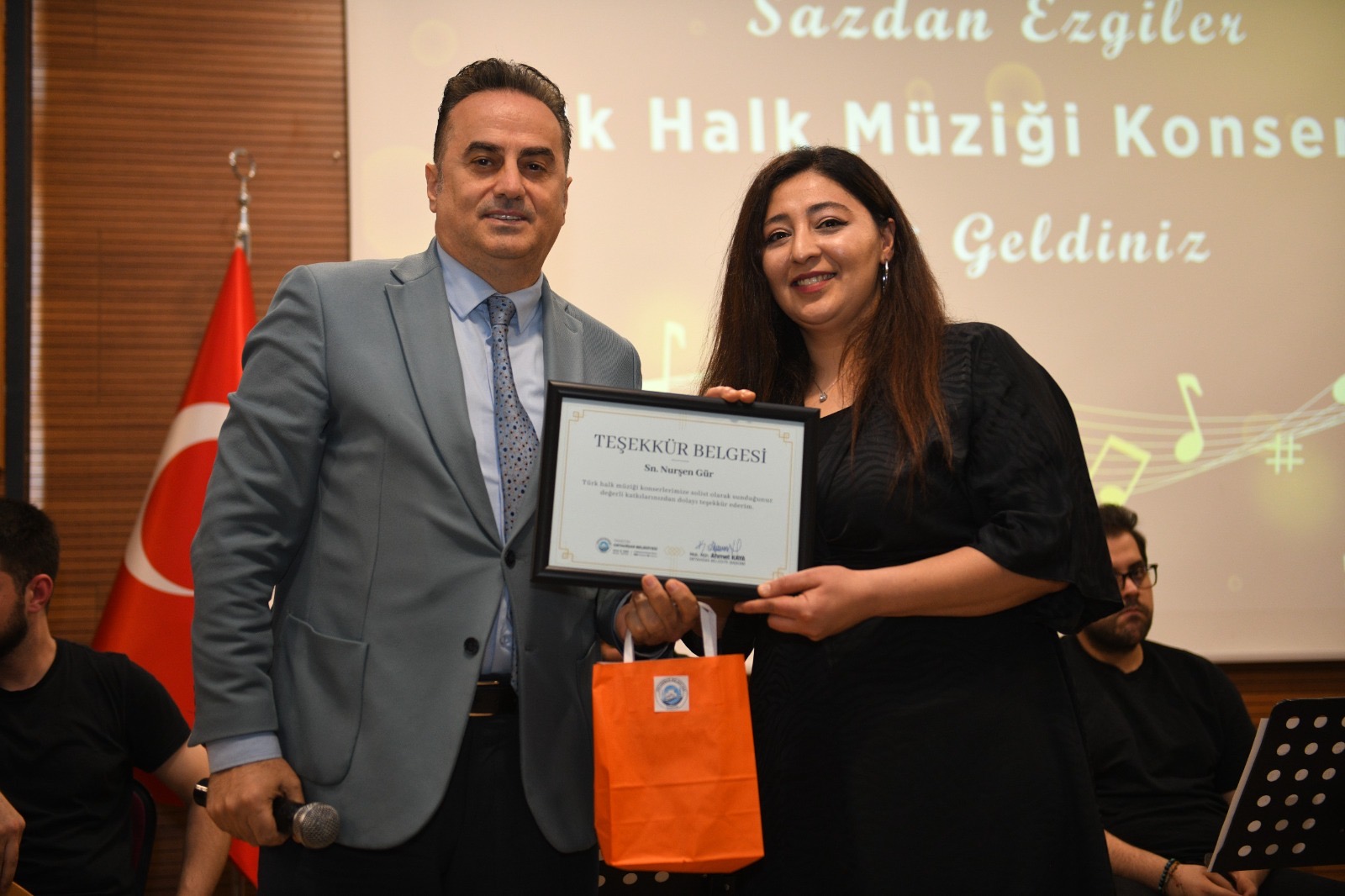 Konser programı, Belediye Başkan Yardımcıları Cüneyit Zorlu, Celal Akaç ve Özer İskender solistler Sevim Ateş, Olcay Çiftçi ve Nurşen Gür’e, Belediye Meclis Üyelerinin de orkestra üyelerine teşekkür belgesi ve hediye takdimi ile sona erdi.
