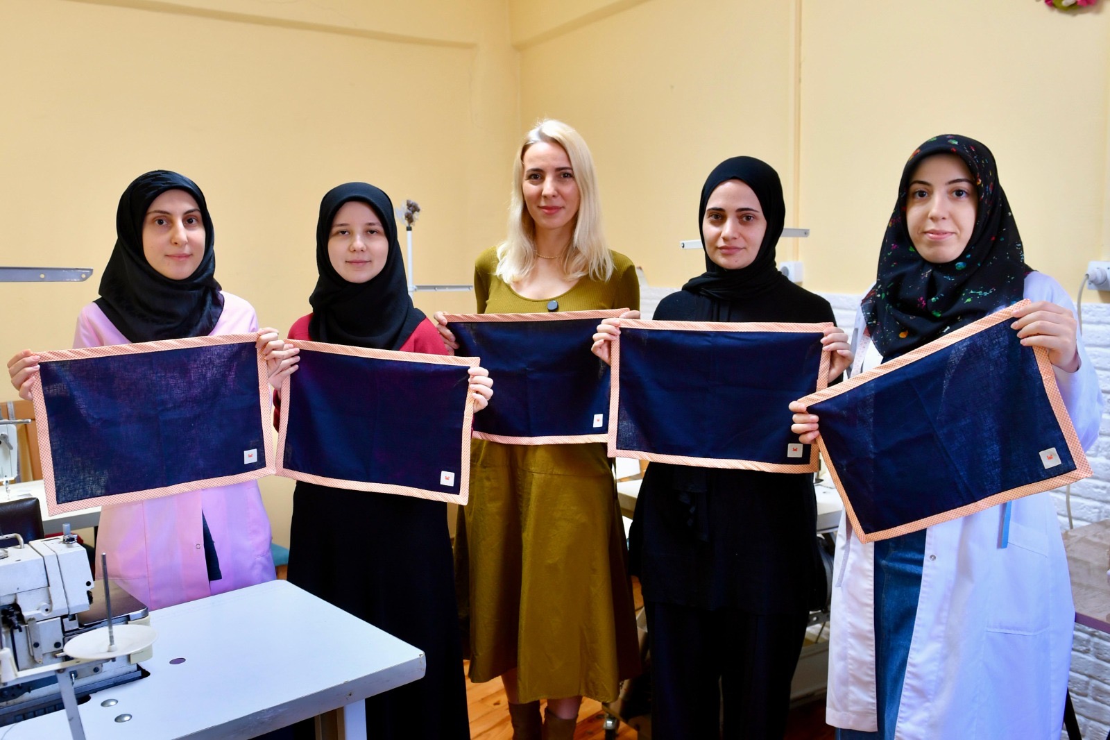 TEKSTİL ÜRETİCİSİ KADINLAR, ÖĞRENCİLERİN YEMEKLERİNİ HİJYENİK ŞARTLARDA YİYEBİLMESİ İÇİN ÖRTÜ HAZIRLIYOR