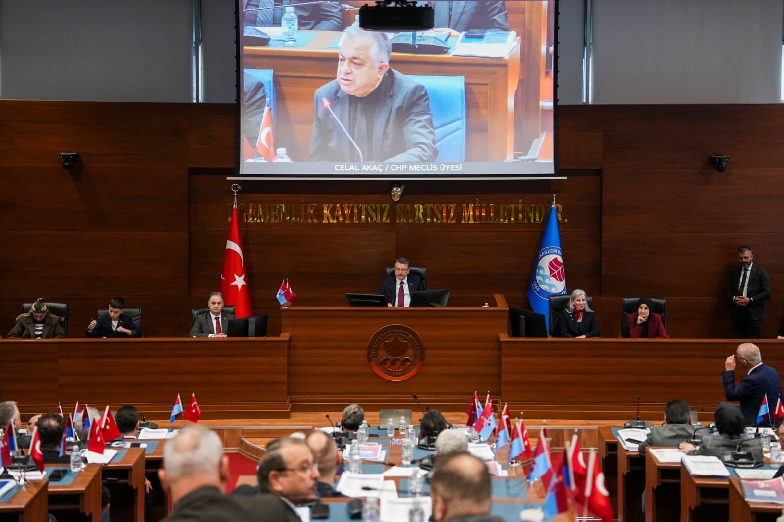 Trabzon Büyükşehir Belediye Meclisi’nin Kasım Ayı Toplantılarının ilk birleşimi, Türkiye Cumhuriyeti’nin kurucusu, Büyük Önder Gazi Mustafa Kemal Atatürk’ün ölümünün 87’inci yıldönümü dolayısıyla, Meclis Toplantısı saygı duruşu ve İstiklal Marşı ile başladı.