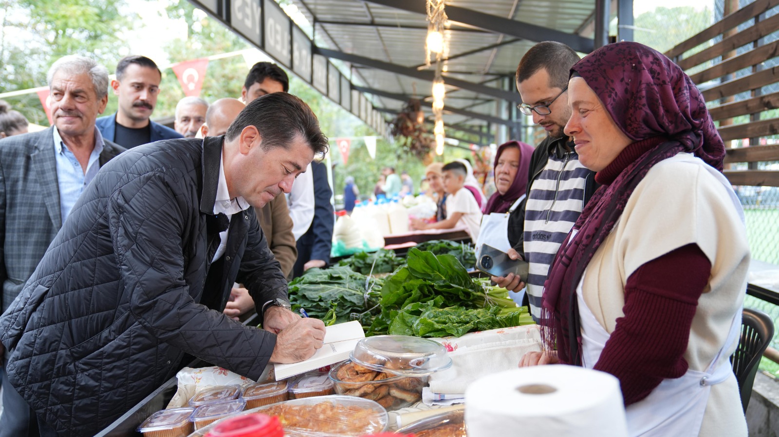 Eşi Tuba Kaya ile tezgahları gezen Başkan Kaya, köylü pazarı esnafı ile sohbet etti. Esnafın pazarla ilgili düşüncelerini dinleyen Başkan Kaya, köylü pazarı esnaflarından Reyhan Mermertaş’ın isteği üzerine İstanbul Büyükşehir Belediye Başkanı ve CHP Cumhurbaşkanı Adayı Ekrem İmamoğlu’nun mücadelesini anlatan, Yavuz Oğhan’ın yazdığı ‘Millete Emanet’ kitabını imzaladı. Başkan Kaya, Mermertaş’a hem köy pazarına sunduğu katkılardan dolayı hem de Ekrem İmamoğlu’na yapılan adaletsizliğe karşı çıktığı için teşekkür etti.