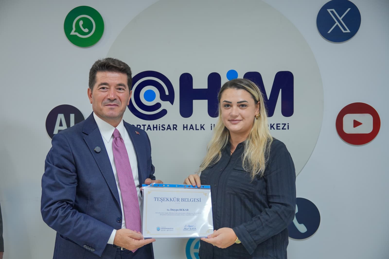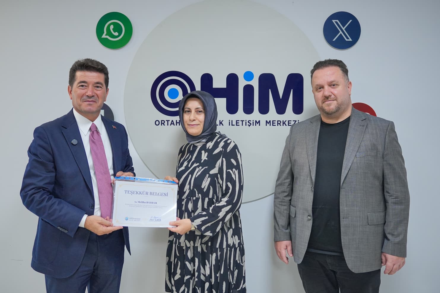 Hayatı kolaylaştıran insan odaklı projelerle hizmet anlayışını dijitalleştirdiklerini belirten Başkan Kaya, attıkları adımlarla vatandaşların işini kolaylaştırdıklarını dile getirdi. OHİM çalışanlarına teşekkür belgesi veren Başkan Kaya, “Gerçekten çok önemli bir görev üstleniyorsunuz. Arayan insanların ruh hali farklı olabiliyor ama siz hizmet bilinciyle vatandaşların sorunlarına çözüm üretmeye çalışıyorsunuz. Emeklerinize sağlık. Hepinize çok teşekkür ediyorum, kolaylıklar diliyorum” dedi.