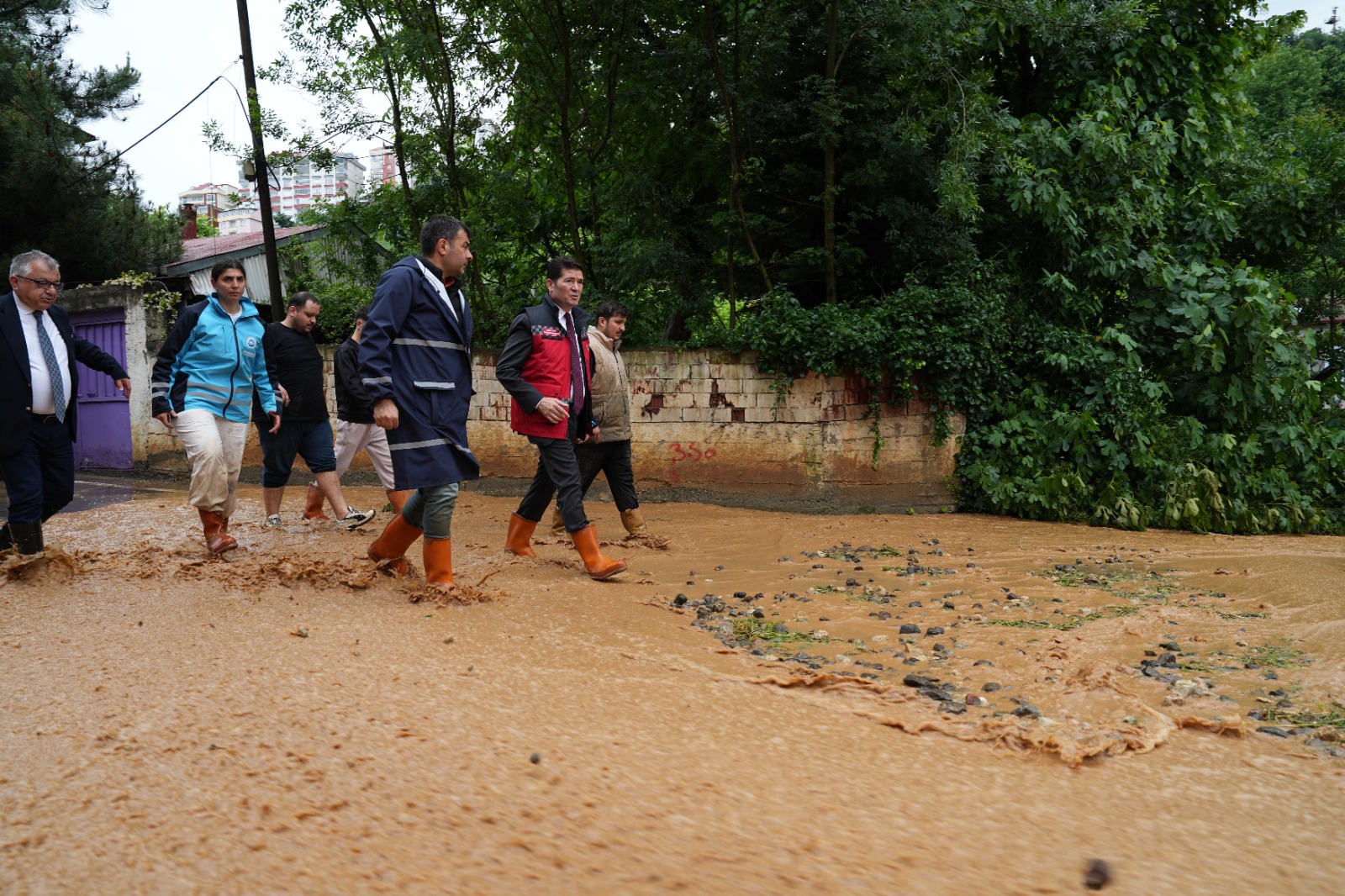 Şiddetli yağışın neden olduğu sel, su baskınları ve heyelanların ardından sahaya çıkan Ortahisar Belediye Başkanı Ahmet Kaya, dün afetten etkilenen kırsal mahallelerde ve gece de geç saatlere kadar merkez mahallelerde yapılan çalışmaları takip etti.