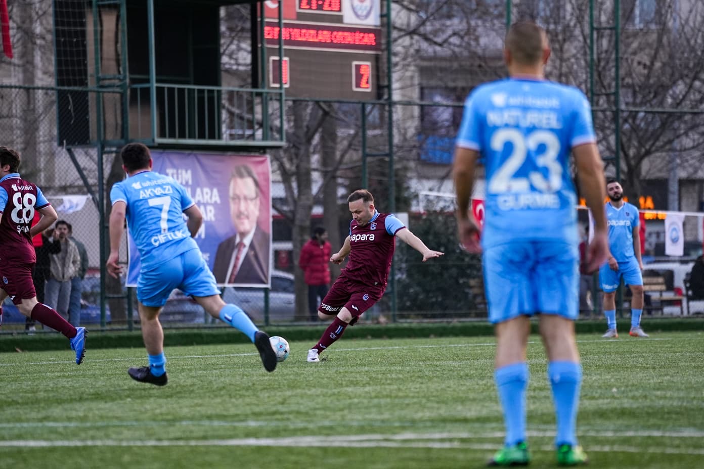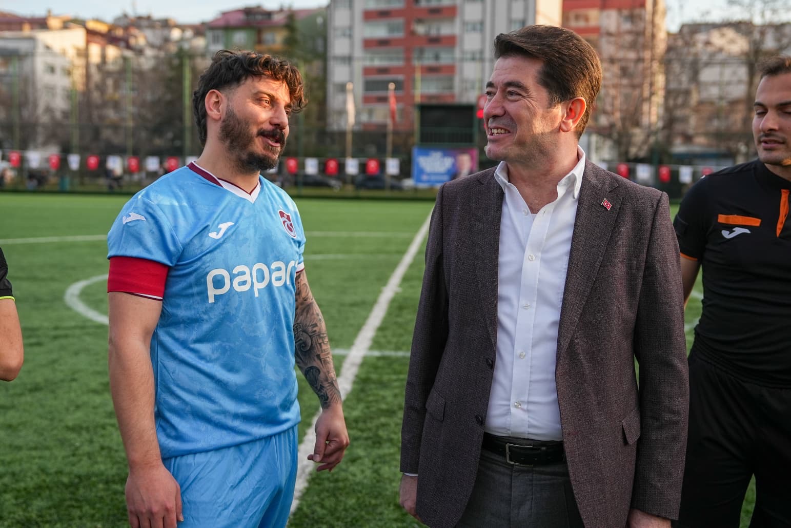 Ortahisar Belediye Başkanı Ahmet Kaya’nın ekonomik zorluk çeken üniversite öğrencileri için başlattığı burs kampanyasına destekler devam ediyor. Sporun dayanışma ruhu ve gücüyle, gençlerin eğitim yolculuğuna katkı sağlamak amacıyla Ortahisar Belediyesi’nin öncülüğünde, dijital içerik üreticisi Samet Öztürk ve Kadir Arslan’ın destekleriyle, “Burs İçin Sahaya” sloganıyla anlamlı bir futbol maçı düzenlendi. Maçta, sosyal medya fenomenleri ve bağışçı iş insanlarının oluşturduğu Şehrin Yıldızları takımı ile Ortahisar Belediyesi takımı karşı karşıya geldi.