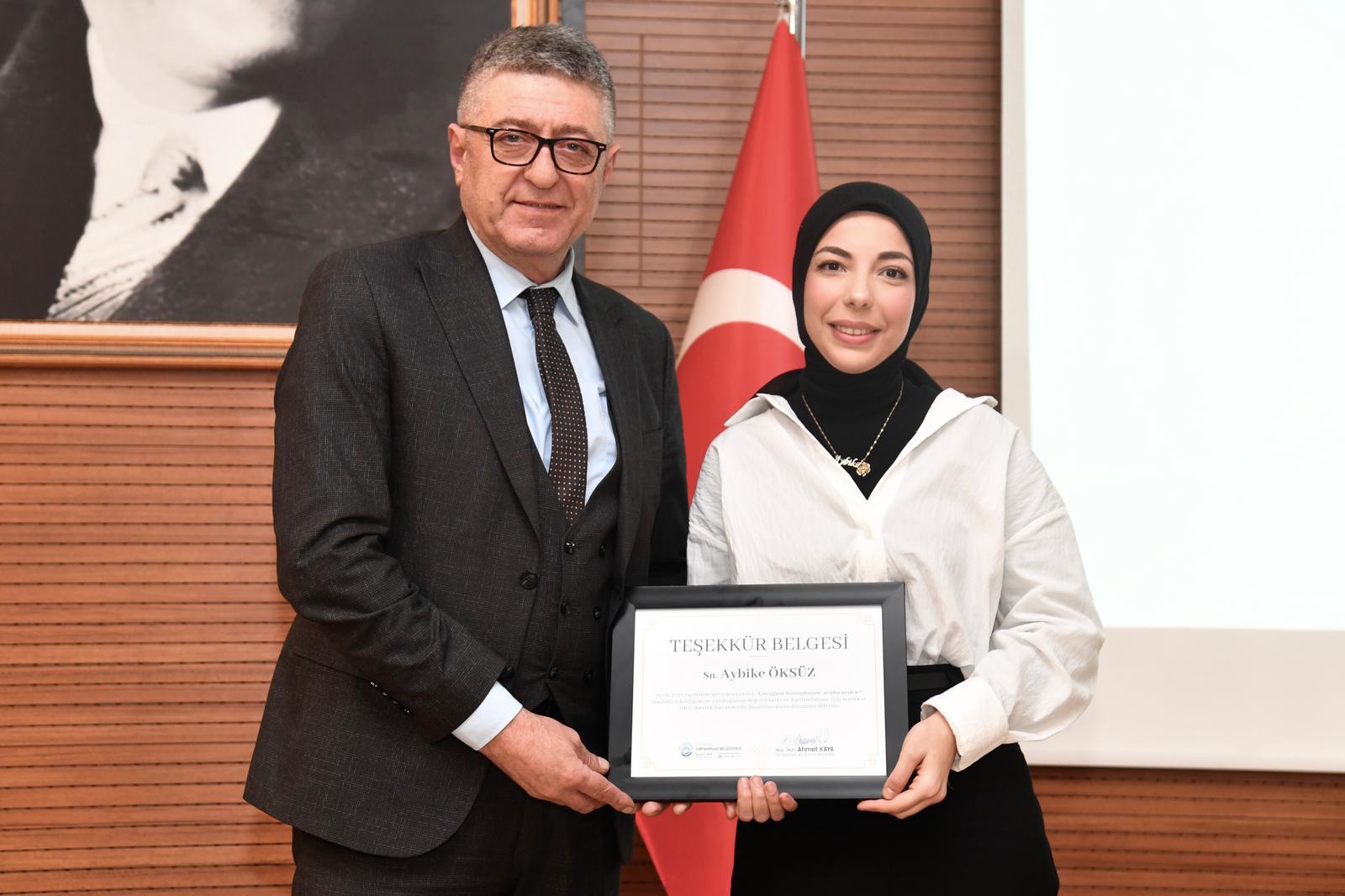 Arslan ve İskender, programın sonunda Dil ve Konuşma Terapistleri Aybike Öksüz ve Zeynep Sude Arslan’a teşekkür belgesi takdim etti.