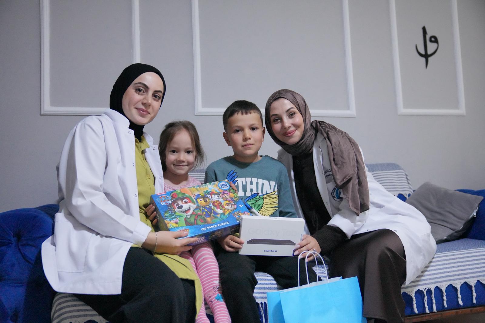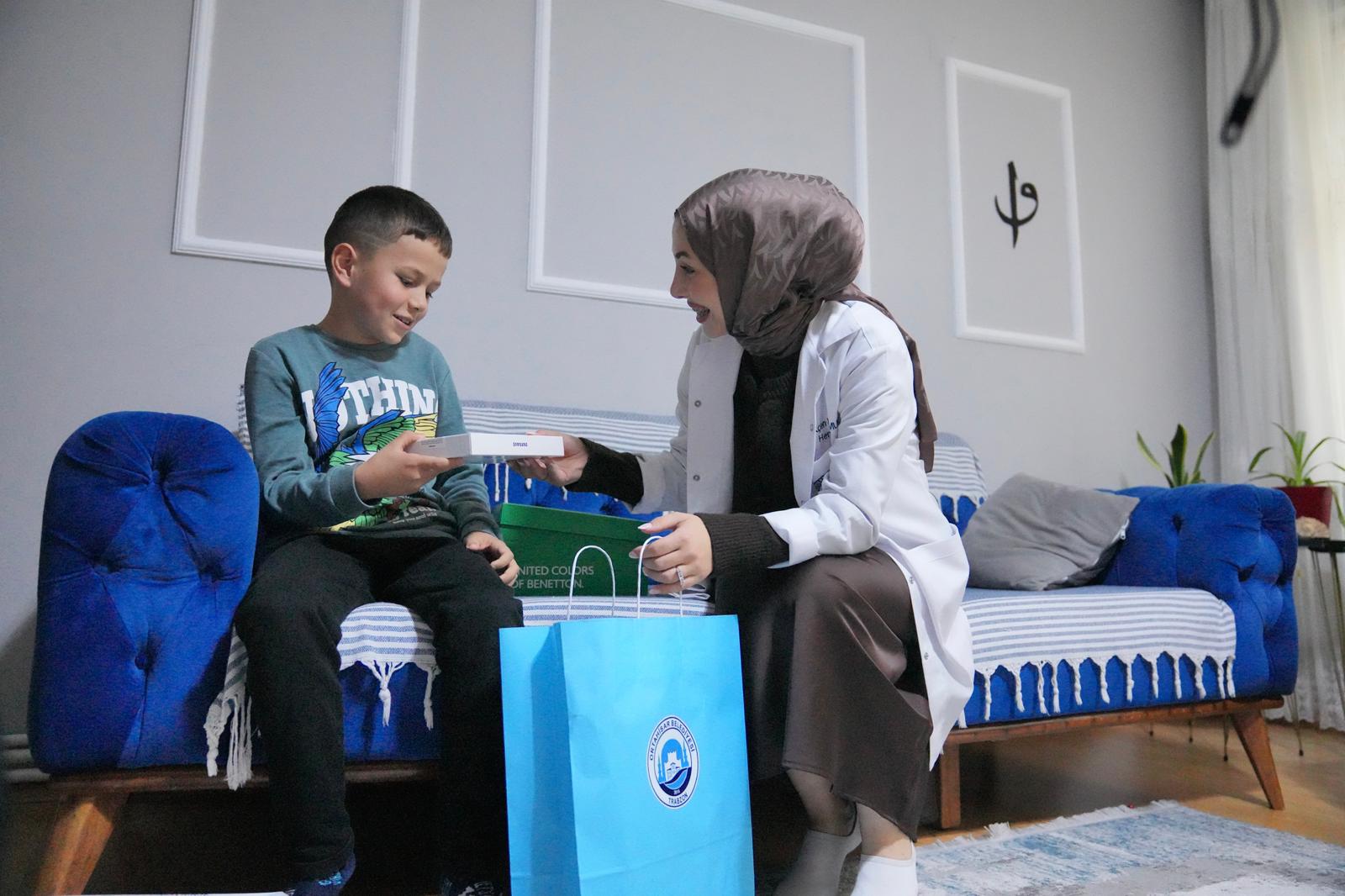 Sosyal Hizmetler Müdürlüğü’nde görevli hemşireler, lösemiyi yenen diyabet hastası 10 yaşındaki Ali Hamza Kacamer’i 1 Nolu Erdoğdu Mahallesi’ndeki evinde ziyaret ederek Başkan Kaya’nın gönderdiği tablet, bot ve yapbozdan oluşan hediye çantasını ulaştırdı. Hediyeleri ve ilgilerinden dolayı Ali Hamza ve ailesi memnuniyetini dile getirerek Başkan Kaya’ya teşekkürlerini sundular.