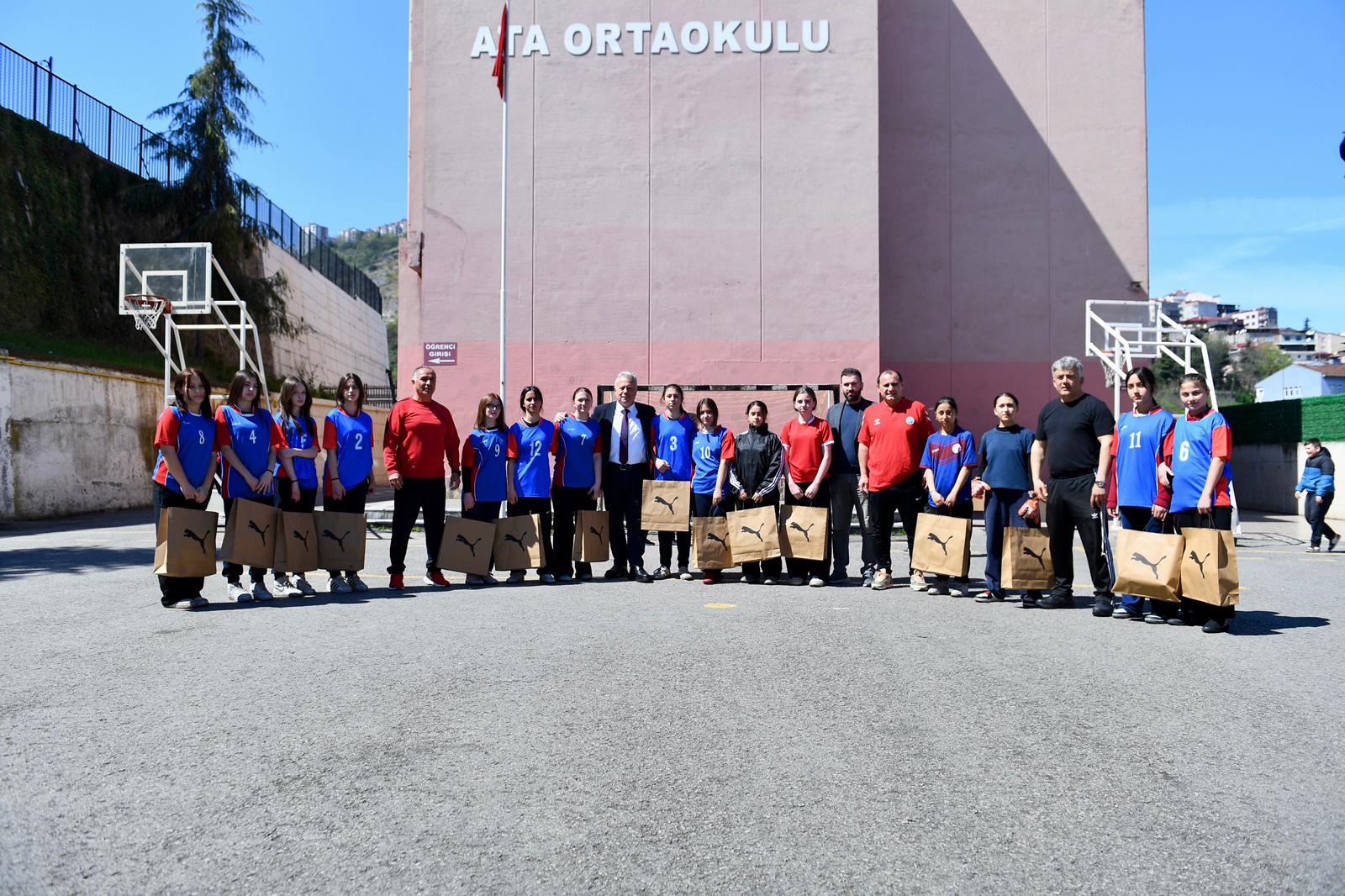 Ortahisar Belediyesi, Trabzon’da 16 yıldır üst üste şampiyon olarak önemli bir başarıya imza atan Ata Ortaokulu Küçük Kızlar Futsal Takımı’na malzeme desteğinde bulundu. Başkan Yardımcısı Cüneyit Zorlu, “Ata Ortaokulumuz, futsaldaki başarısıyla bizleri gururlandırıyor. Ortahisar Belediyesi olarak kısıtlı imkanlarla büyük başarılara imza atan kızlarımızın her ihtiyaçlarında yanında olacağız” dedi.