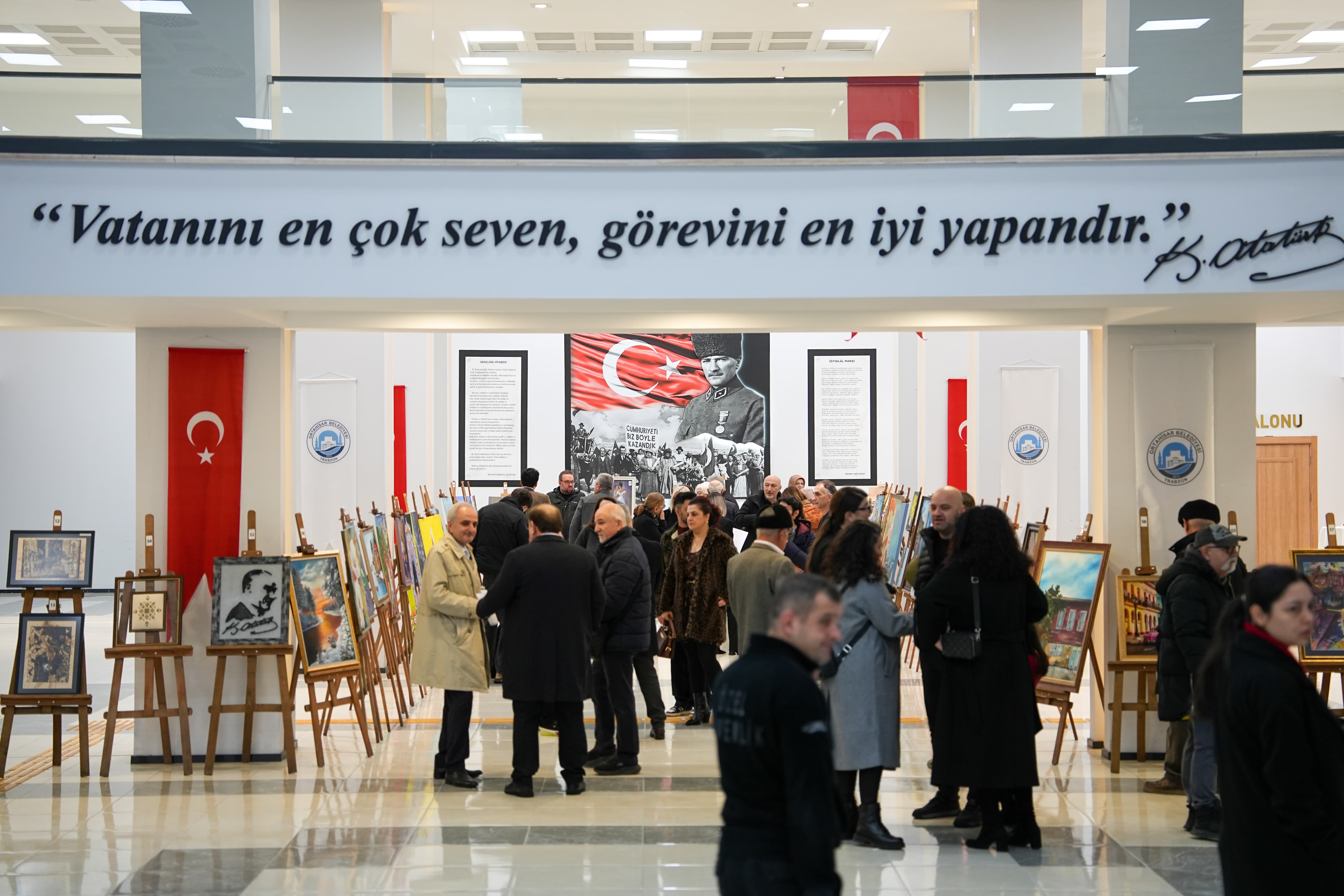 Ortahisar Belediyesi ve Ortahisar Eğitim Derneği’nin iş birliğiyle, üniversite öğrencilerine burs desteği sağlamak amacıyla bir resim sergisi düzenleniyor. ‘Sanatın ışığıyla gençlerimizin eğitim yolculuğuna hep birlikte umut olalım, destek olalım’ temasıyla, Belediyenin -2. kat fuaye alanında düzenlenen serginin açılışına Ortahisar Belediye Başkanı Ahmet Kaya, CHP Trabzon Milletvekili Sibel Suiçmez, İYİ Parti önceki dönem Trabzon Milletvekili Hüseyin Örs, Belediye Başkan Yardımcıları Cüneyit Zorlu, Mustafa Özer İskender ve Ernul Arslan, CHP Ortahisar İlçe Başkanı Haluk Batmaz, Belediye Meclis Üyeleri, CHP Ortahisar İlçe Kadın Kolları Başkanı Şennur Güler Özkan, iş insanları, siyaset ve sanat camiasından çok sayıda kişi katıldı.