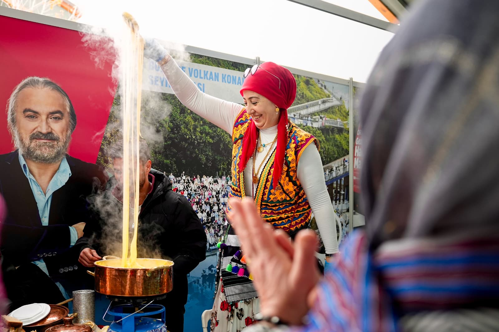 Standı gezen misafirlere Ortahisar fındığı, çayı ve yöresel lezzetleri hakkında bilgiler aktarılırken, Ortahisar Belediyesi’nin Trabzon’a kazandırdığı Zuluf Çikolata markasının ürünlerinin de tanıtımı yapıldı. Stantta pişirilerek ziyaretçilere ikram edilen Karadeniz mutfağının vazgeçilmez tatlarından kuymak da büyük ilgi gördü. Hem tanıtım ürünleri, ikramları hem de misafirperverliğiyle Ortahisar standı, Trabzon Günleri’nde ziyaretçilerin buluşma noktalarından oldu.