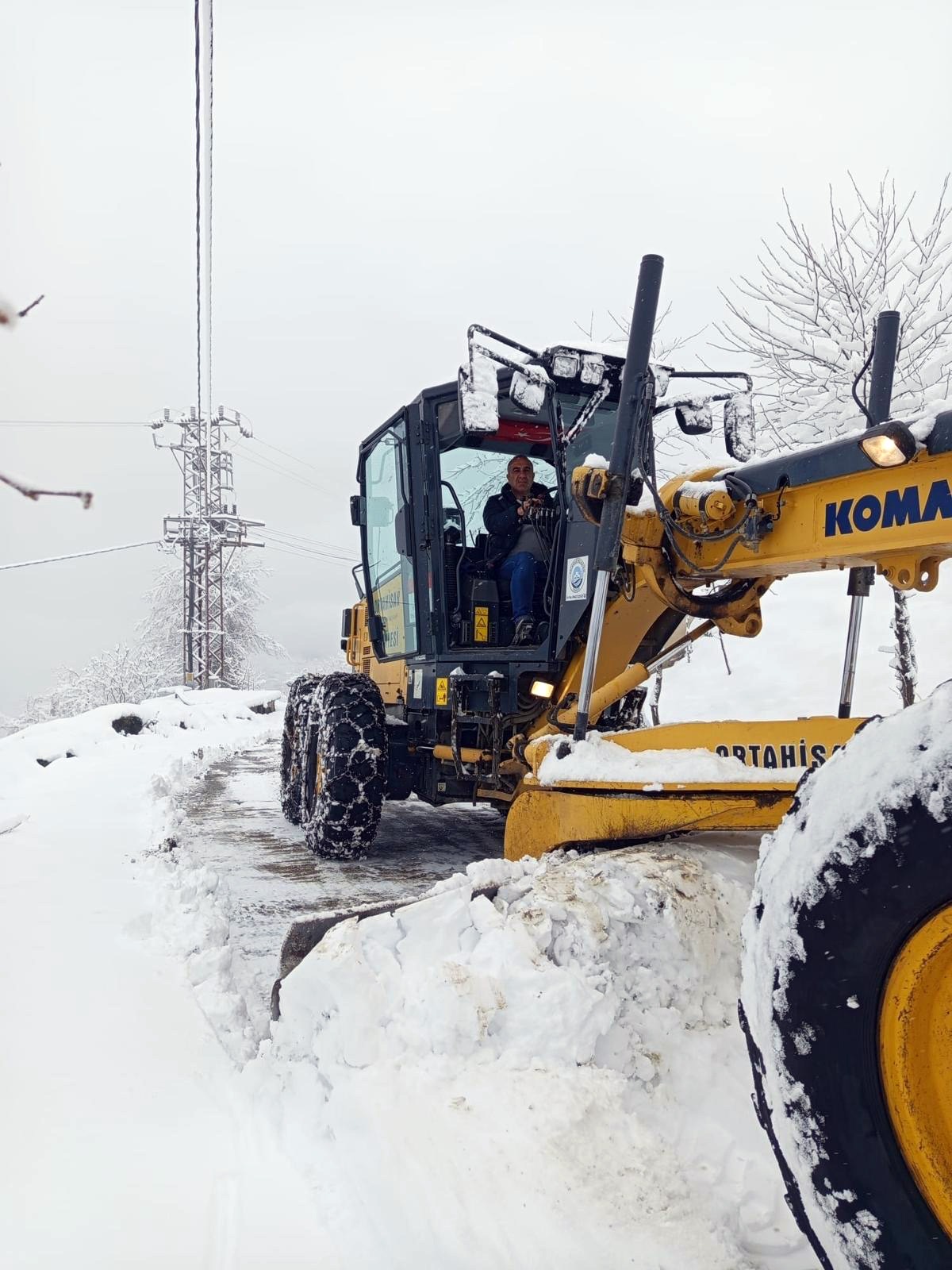 Trabzon genelinde devam eden kar yağışları, Ortahisar ilçesinin yüksek kesimlerinde etkili oluyor. Kar yağışlarının ulaşımda aksaklıklara yol açmaması ve vatandaşların mağdur olmaması için gerekli bütün tedbirleri alan Ortahisar Belediyesi; 5 greyder, 13 JCB, 3 kepçe ve 6 tuzlama aracı olmak üzere toplam 27 iş makinesi ve 70 kişilik ekiple, çalışmalarını aralıksız sürdürüyor. İlçenin yüksek kesimlerinde kar kalınlığı 50 cm’ye ulaşırken, Fen İşleri Müdürlüğü’ne bağlı ekipler, 30 kırsal mahallede yoğun bir çalışma yürütüyor. Ortahisar ilçe genelinde şu an itibarıyla ulaşıma kapalı mahalle yolu bulunmuyor.