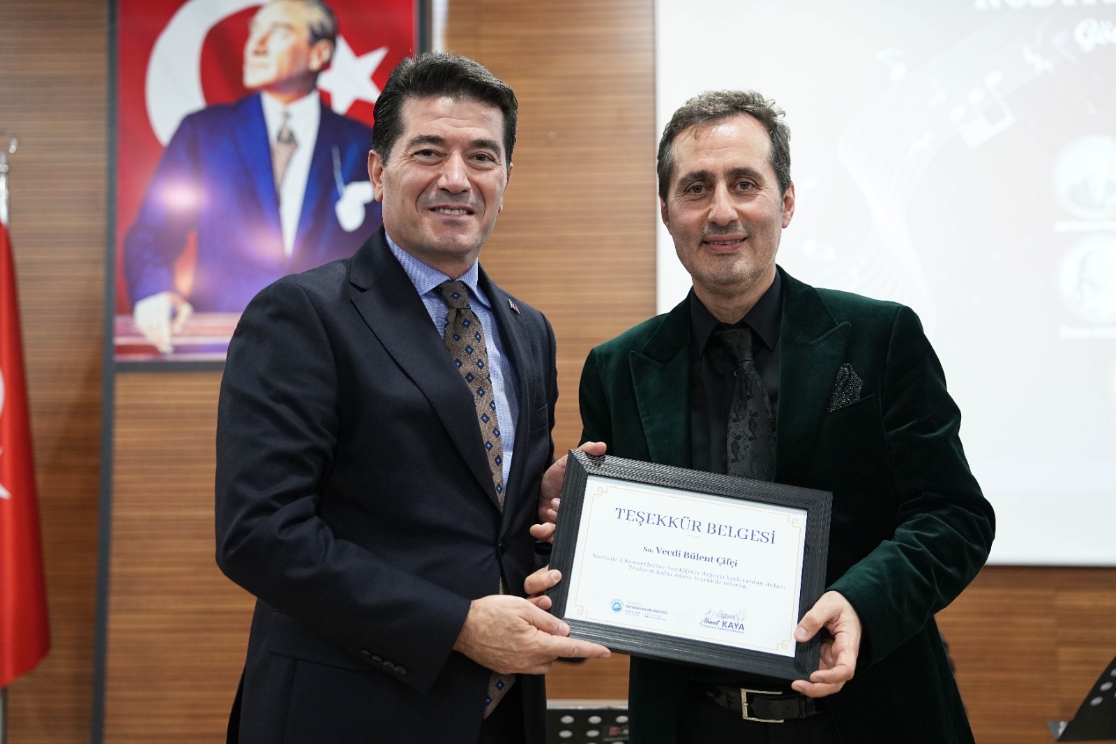 Konserde sahne alan sanatçılara, saz heyetine ve programa katılan davetlilere teşekkür eden Başkan Kaya, “Yorucu bir haftanın güzel bir akşamında sizlerle buluşmaktan çok mutlu olduk. Gerçekten bu koşuşturmanın içinde, bu zor dönemin içinde, bu tür etkinliklerle nefes alıyoruz, kendimize geliyoruz. O yüzden sizlere çok çok teşekkür ediyorum. Bu koşuşturmanın, yoğunluğun içinde fark etmiyoruz ama insan için nefes alma aralığı, bu tür programlar oluyor. O yüzden sanat ve sanatçılarımız bizler için çok değerli. Bu güzel akşam için, bizlere yaşattıklarınız için sizlere çok teşekkür ediyoruz. Yeni yılınızı da gönülden kutluyorum. Ailenizle ve tüm sevdiklerinizle sağlıklı, mutlu, huzurlu, barış dolu, adalet dolu bir 2026 diliyorum” diye konuştu.
