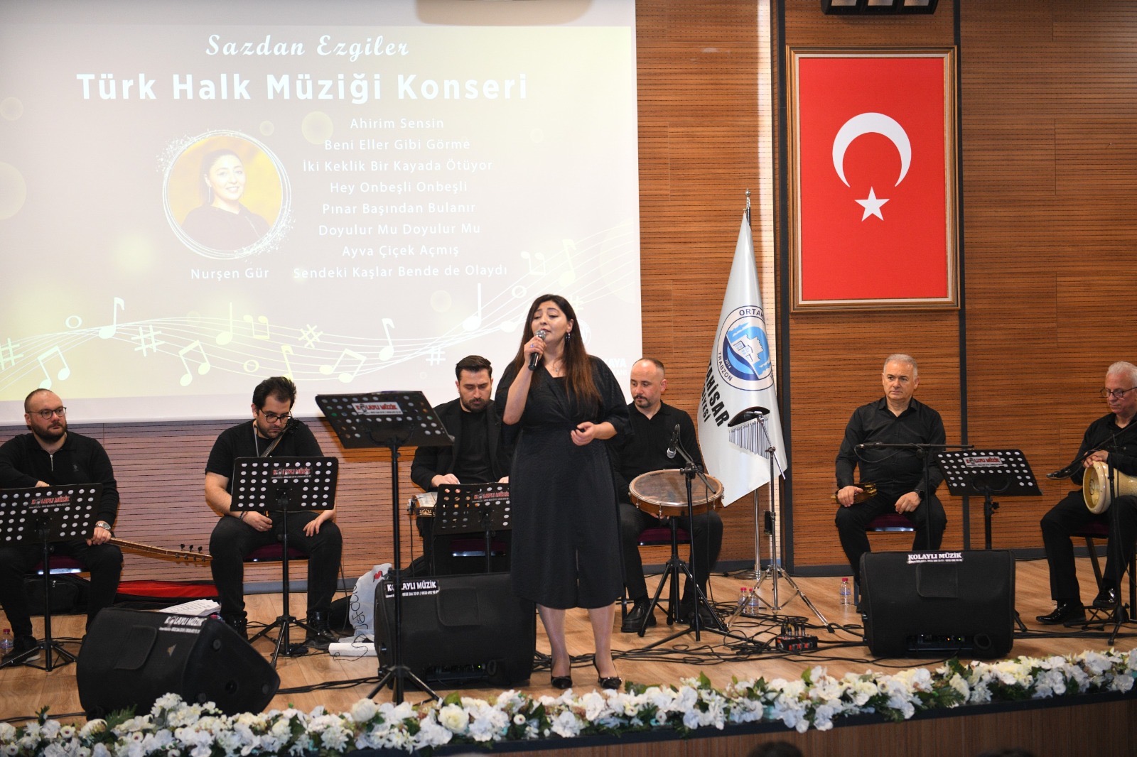 Konserde solistler Sevim Ateş, ‘Ah Yalan Dünya’, ‘Karadır Kaşların’, ‘Mevlam Birçok Dert Vermiş’, ‘Gönül Dağı’, ‘Nar Tanesi’, ‘Kızılcıklar Oldu mu’ türküleriyle açılışı yaparken, Olcay Çiftçi, ‘Yasemen’ ve ‘Bu Dağlar Kömürdendir’ eserlerini seslendirdi. Daha sonra sahneye çıkan Nurşen Gür ise, ‘Ahirim Sensin’, ‘Beni Eller Gibi Görme’, ‘İki Keklik Bir Kayada Ötüyor’, ‘Hey On beşli On beşli’, ‘Pınar Başından Bulanır’, ‘Doyulur mu Doyulur mu’, ‘Ayva Çiçek Açmış’ ve ‘Sendeki Kaşlar Bende de Olaydı’ türküleriyle dinleyicilere müzik ziyafeti sundu.