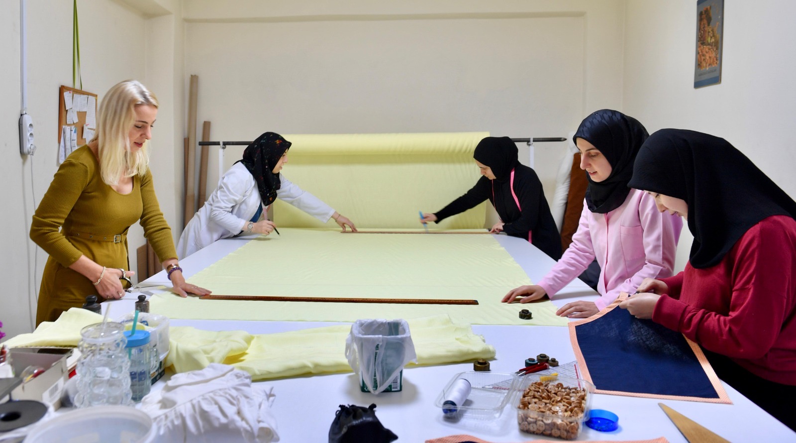 TEKSTİL ÜRETİCİSİ KADINLAR, ÖĞRENCİLERİN YEMEKLERİNİ HİJYENİK ŞARTLARDA YİYEBİLMESİ İÇİN ÖRTÜ HAZIRLIYOR